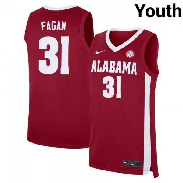 Shop the official Jack Fagan Roll Tide #31 Youth Player College Basketball Jersey - Crimson 499851-667. Made with high-quality materials, this jersey is perfect for game day or any fan event. Show your support for the team by wearing this iconic jersey. Order now and represent your favorite player in style.
